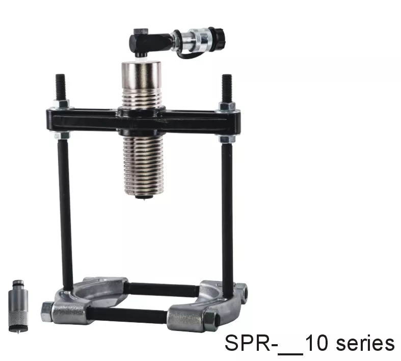 - Self-contained hydraulic pump and puller body with integral safety valve and red warning line.
